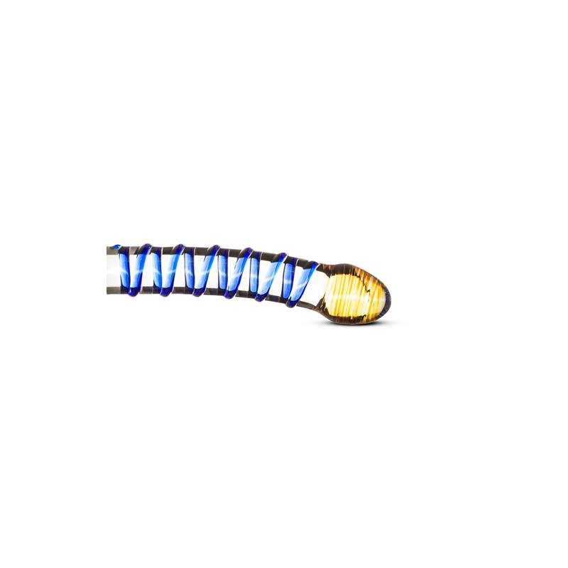 Completa tu colección con este bonito dildo de cristal fabricado de cristal transparente con unas decoraciones en azul que, además, añaden una estimulación extra. Gracias a su base plana podrás usarlo tanto anal como vaginalmente. Gracias a su diseño estimula el punto G y sus materiales no porosos te permiten combinar este dildo con tu lubricante favorito. Es muy fácil de limpiar con un limpiador de juguetes y un poco de agua tibia. ¿Quieres probar el juego de las temperaturas? Utiliza un poco de agua tibia o fría para que el dildo coja la temperatura que deseas (no meter en microondas o congelador)