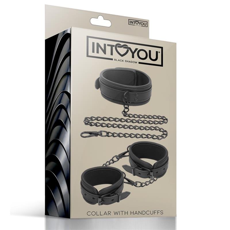 A todos los amantes del BDSM les gusta un buen collar, y en Intoyou Black Shadow hemos pensado en añadir más placer juntándolo con unas esposas para muñecas.